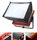 Four integrated barn doors can be folded down when in transit to protect the LEDs.Light intensity can be adjusted without color shifting from 0-100% via manual dimming or remote dimming.